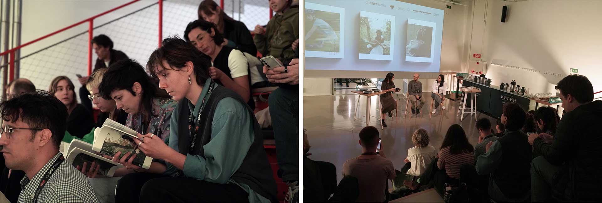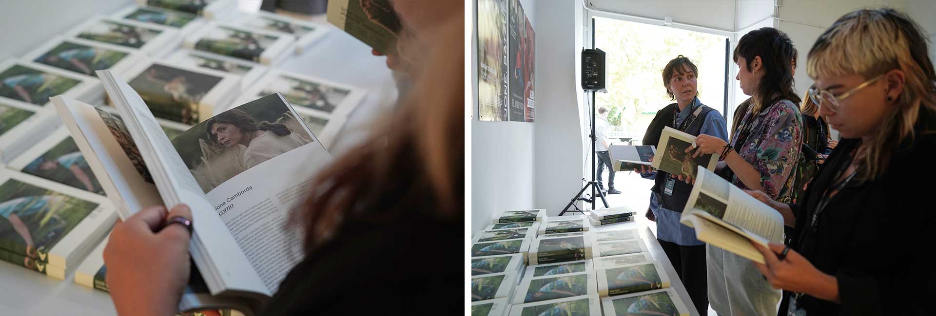 The book launch at the Tabakalera Cinema and Audiovisual Lab was attended by Jaume Claret Muxart (Ikusmira Berriak 2022), who is presenting in Zabaltegi-Tabakalera following its premiere at the Venice Festival (where it won the Bisato d’Oro for Best Artistic Contribution) Estrany Riu / Strange River, the project he developed at Ikusmira Berriak, and Jaione Camborda, who won the Golden Shell with the project developed at the residency in 2020: O Corno / The Rye Horn. The images on the front and back covers of the commemorative book precisely come from Estrany Riu and O Corno. The third image belongs to All Dirt Roads Taste of Salt (Ikusmira Berriak 2019), by the North American filmmaker Raven Jackson, premiered at Sundance and winner of RTVE Another Look Award special mention in San Sebastián.